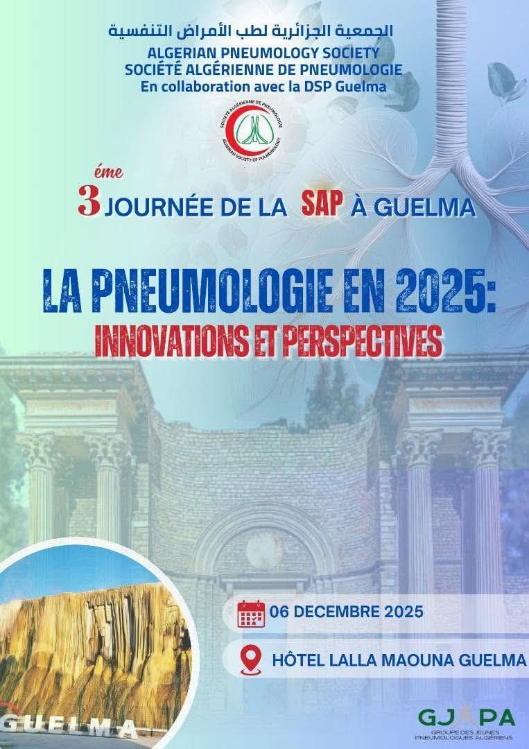 Ne manquez pas cet événement unique à Guelma pour enrichir vos connaissances, partager vos expériences et échanger avec vos collègues. Votre participation est essentielle pour améliorer la qualité des soins en pneumologie en Algérie.