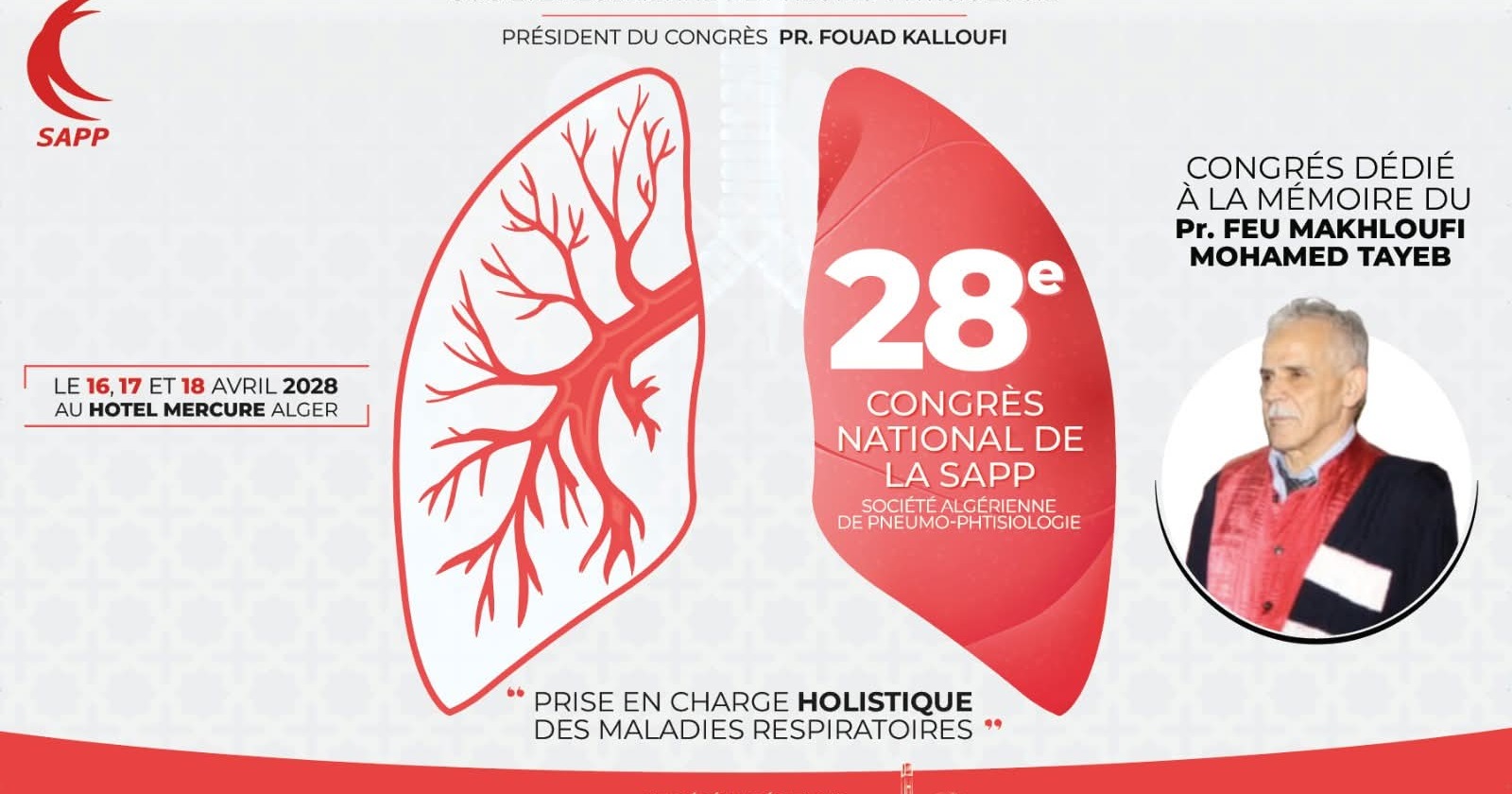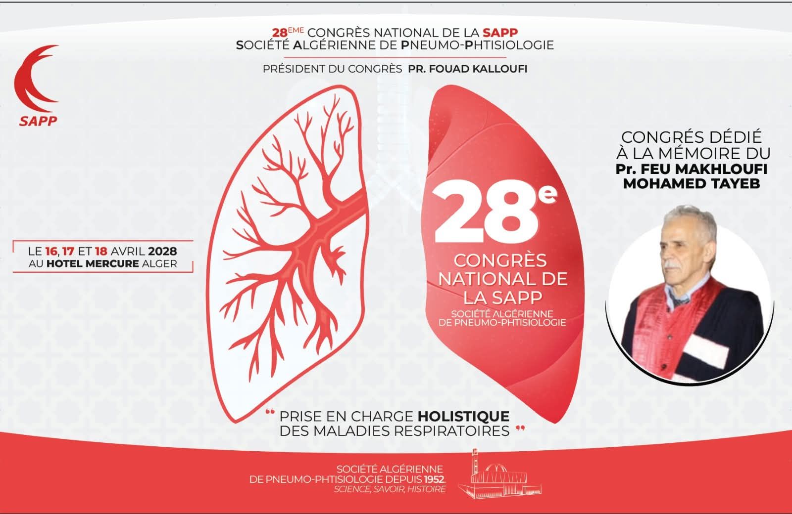 Ce 28ᵉ congrès, présidé par le Pr. Fouad Kalloufi, sera dédié à la mémoire du Pr. Feu Makhloufi Mohamed Tayeb.