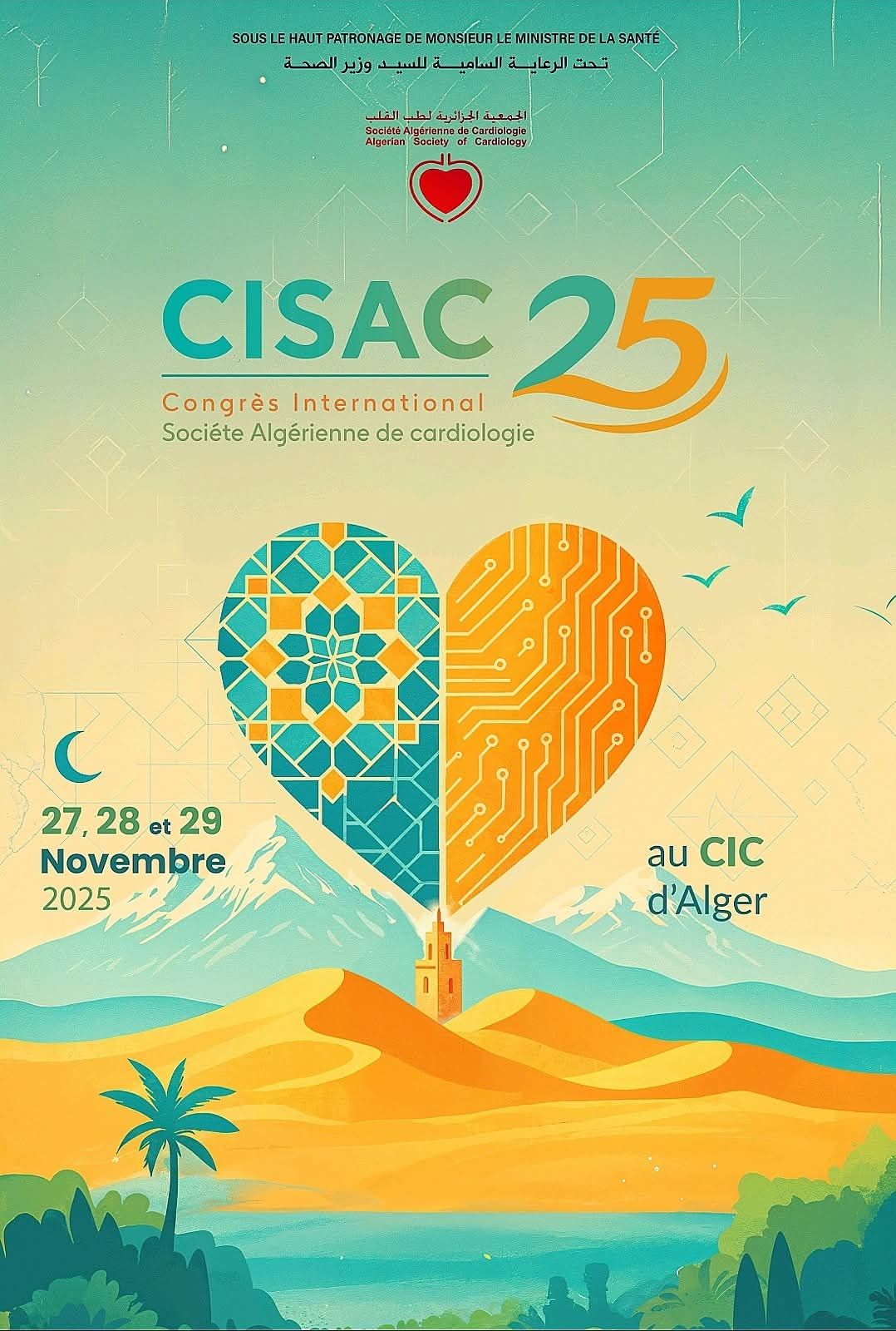 La Société Algérienne de Cardiologie (SAC) a le plaisir d'inviter ses adhérent(e)s, partenaires et l'ensemble de la communauté cardiologique à participer à son qui se déroulera les 27,28 et 29 novembre 2025 au centre international des conférences (CIC) d'Alger,